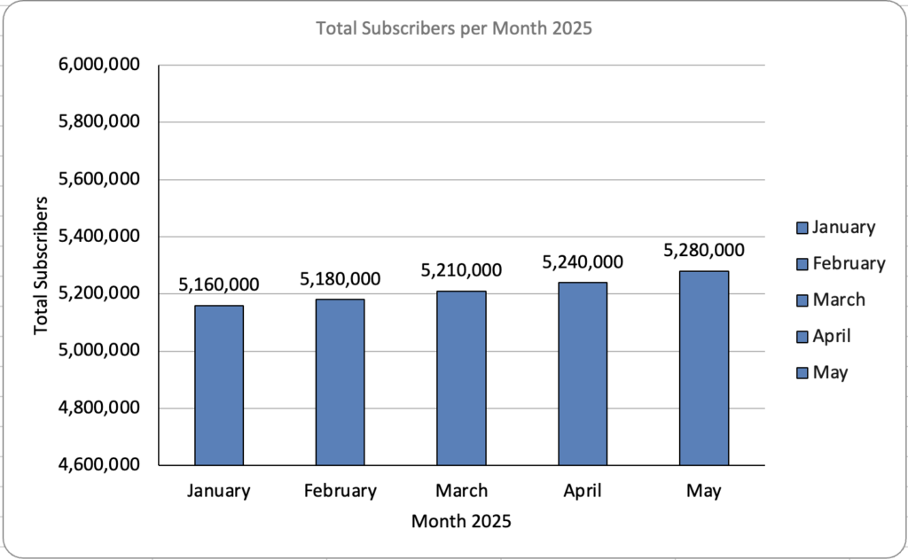 Even with April’s spike in views, May saw the highest subscriber gain (+40K), signaling that Jackson successfully converted viral attention into committed fans.